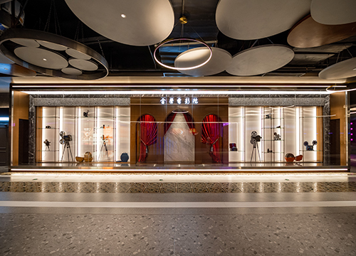 金聲電影院建成于1934年,舊址位于廣州西關(guān)老城區(qū)恩寧路,影院建成后,曾轟動(dòng)一時(shí),當(dāng)時(shí)戲院占地面積2千多平方米,曾稱為“全市影院中之最宏偉者”,是著名綜合娛樂(lè)場(chǎng)所。同時(shí)也是廣州第一家有冷氣的影院,坊間流傳:“人皆苦炎熱,我愛(ài)金聲涼”的名頭便是由此而來(lái)。“新金聲”的整體布局由“重現(xiàn)金聲”(影廳區(qū)域)“藝術(shù)金聲”(公共區(qū)域)“創(chuàng)意金聲”(大堂區(qū)域)三部分構(gòu)成。在籌備團(tuán)隊(duì)的精心策劃下,于影院內(nèi)陳列放置了金聲電影院舊址的騎樓裝飾,并將影院的7個(gè)影廳分別以7座大家耳熟能詳?shù)睦献痔?hào)影院命名,他們分別是:中華、樂(lè)善、明珠、新華、新星、長(zhǎng)壽、美華。這一個(gè)個(gè)陪伴了廣州市民童年歲月的老字號(hào)影劇院,將以這種特殊的方式得以重生,在“新金聲”的懷抱中,用光影續(xù)寫新的篇章。在公共區(qū)域的裝修設(shè)計(jì)上,影院結(jié)合廣府文化元素,參考舊址外立面的建筑特色,利用現(xiàn)代設(shè)計(jì)手法,打造極具西關(guān)特色的電影藝術(shù)空間。為更好體現(xiàn)“人皆苦炎熱,唯有金聲涼”這一句曾家喻戶曉的美譽(yù),影院大堂通過(guò)玻璃、鏡面、亞克力等材質(zhì),使影迷在進(jìn)入瞬間開(kāi)始便能感受到金聲電影院所帶來(lái)的歷史文化的厚重感。在公共區(qū)域,通過(guò)“策展+”的方式以“百年金聲”為常態(tài)展覽主題...